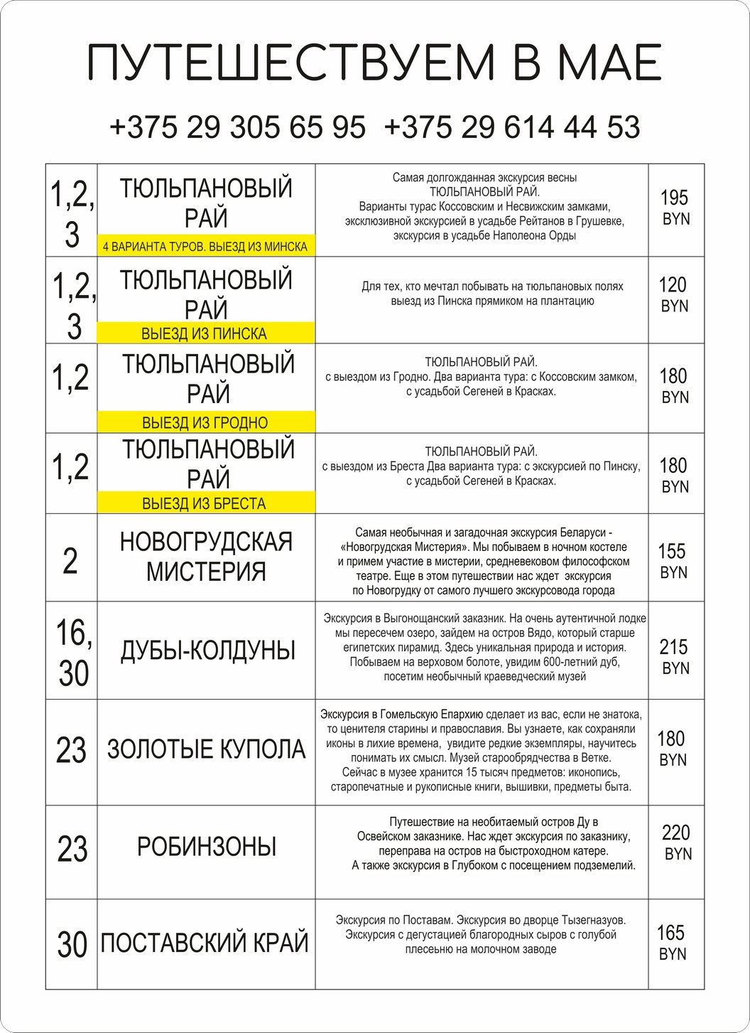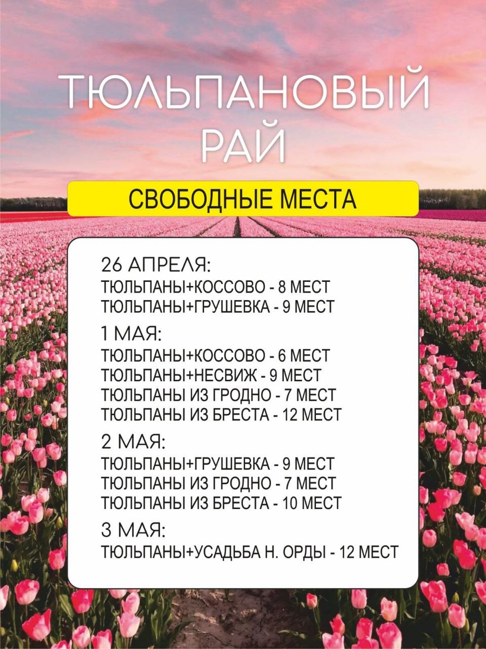 С выездом из Гродно. Даты тура 1 и 2 мая СТОИМОСТЬ ТУРА 180 РУБЛЕЙТюльпановый рай и Краски (выезд из Бреста)